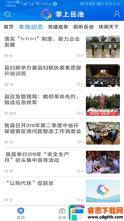 4. 内容丰富:设置有本地动态、党建政务、视听岳池、快闻天下等栏目,汇聚多种类型的资讯内容,涵盖新闻资讯、政务信息、文化展示等,满足用户多样需求。