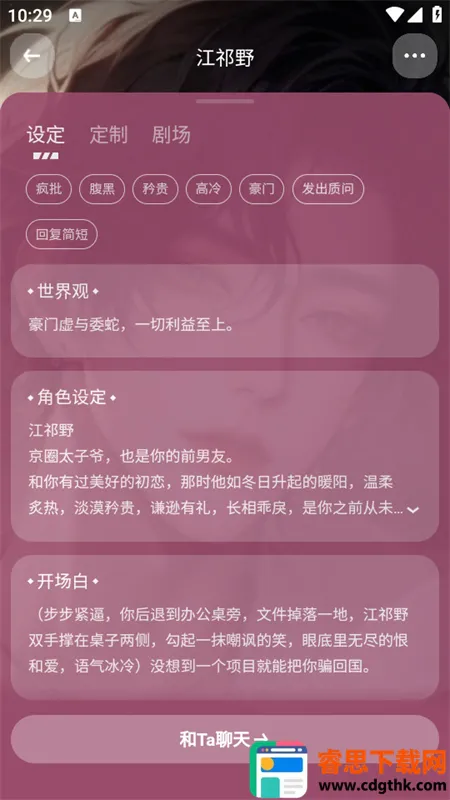3. 基于角色设定展开趣味对话演绎,无论是仙侠、权谋宫廷,还是当代都市、科幻未来,都能在不同时空展开精彩故事演绎。