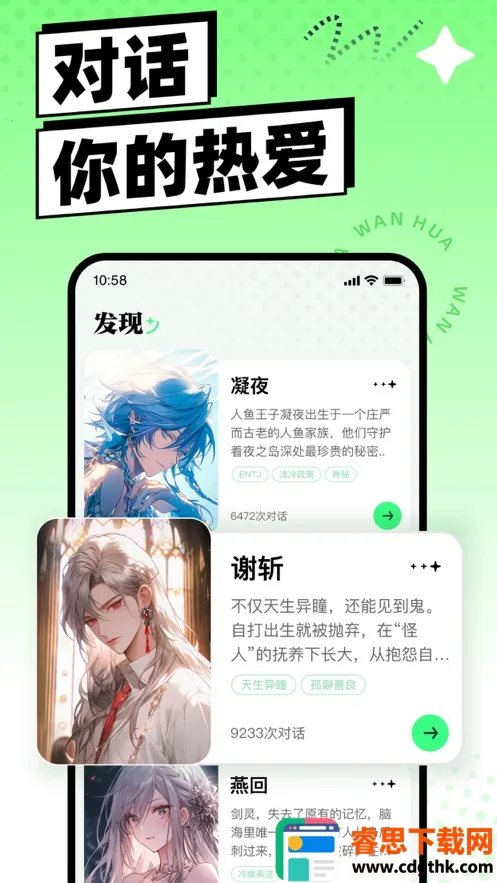 万话app是一款超有趣的智能聊天应用。它能借助大语言模型和图像生成模型,帮你生成各种个性独特的虚拟角色,还能为其添加有趣设定。有了它,不管是仙侠权谋、都市科幻,你都能和AI虚拟人在不同时空演绎精彩故事。你可以浏览其他用户创建的公开角色,找到感兴趣的开启对话。它能满足你随时随地趣味对话的需求,给你超棒的聊天体验。