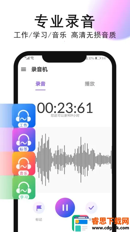 2. 功能丰富多样,不仅能当作普通录音机使用,还可充当备忘录和音频器。支持专业音频调试,双麦克风立体声录音,配合专业滤音器提升录音品质。