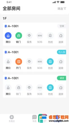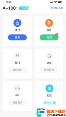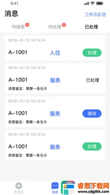 3. 功能多样:上班时按下开工就能等待服务区域内客房需求;接收到退房请求,负责人员可记下额外费用及客人遗漏物品;每一条服务都会记录在日志中。