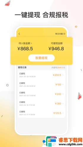 3. 一键提现,合规报税,财务操作便捷高效。
