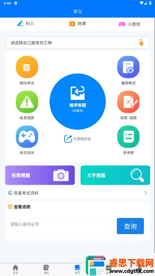 凯奇学校是一款专注职业技能培训的软件,对特种作业人员帮助很大。它有丰富题库,涵盖多部门多种工种,能顺序练题、模拟考试等。支持线上报名,可就近选考点线下考试。课程由专业老师设计,视频高质量,还有在线老师答疑。能实时查学习进度、证书认证,错题会记录。界面简洁,多平台可用。更新日志显示不断优化,如练题收藏、报名地址等。总之,是提升职业技能的实用工具,值得特种作业人员下载。