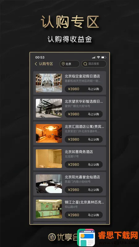 3. 优惠活动众多:注册即送优享会员。预订酒店可获优币,能在商城兑换全球好货。豪车租赁无乱七八糟手续费,一键下单送车上门。新增认购专区,认购热门酒店会员住店可得收益金。还有限时团购,发起或参与可获使用金,9折住酒店买好货。