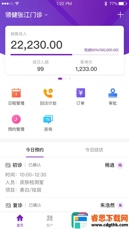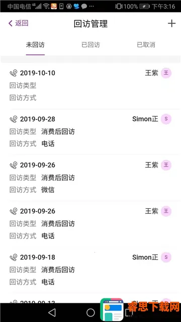 在日程管理方面,可根据用户人数和时间安排回访计划,制定预约回访方案,科学合理规划日程,高效完成工作目标。它能实时更新数据,涵盖意向客户、重点客户等,还能提供生日关怀,看到流失预警状态及时回访。回访形式多样,包括电话、微信等,清晰展示未回访、已完成、已取消等状态。