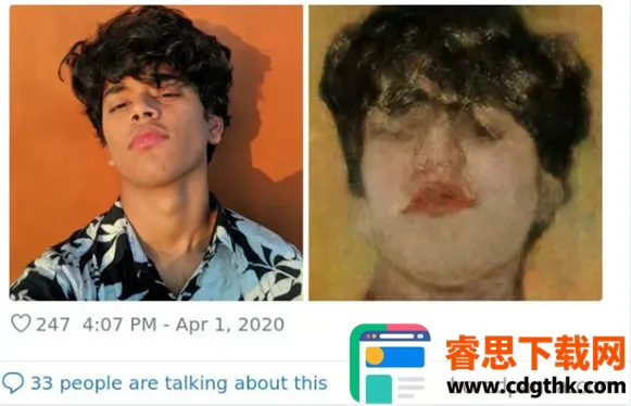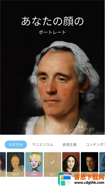 AI gahaku 是一个将人像转化为油画的软件,你只需要点击网址,输入自拍,再选择油画滤镜即可生成一张你的古典油画。