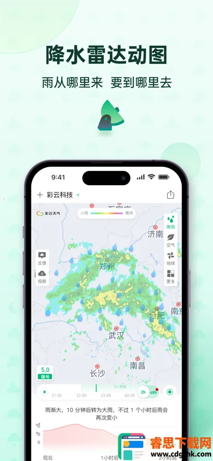 彩云天气是一款天气预报软件,能提供当地各时段精准预报,具体到分秒。有700部气象雷达构建的AI预报网络,还可查空气质量、获取生活指数、享受智能语音播报等,有普通版和专业版,支持多语言、自动定位等。