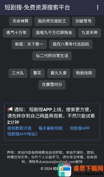 短剧搜网盘类软件超好用!它能帮咱快速找到想看的短剧资源。只要输入关键词,就能精准定位,不管是热门还是小众短剧,都能轻松搜到。这软件支持多种云盘,像夸克、阿里云盘、迅雷、百度云等,资源超丰富。而且每天实时更新,追剧不愁没新剧看。它界面极简,功能强大,无会员无广告,直接就能保存观看。搜索结果能直接复制链接到网盘打开,还支持设置时间和过滤后缀词。有了它,咱想看短剧时,随时随地都能找到资源,在线播放或离线下载都行,打破时间地点限制,轻松享受追剧时光,满足咱个性化的追剧需求,真是追剧必备神器!