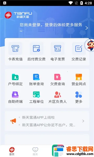 新天富通2026最新版本是新疆天富能源公司打造的综合能源服务APP,是电热气水等线上业务官方入口。支持多户号管理,能线上缴费、查账单、看余额、查停电公告等,还可导航至附近服务网点,足不出户便捷生活。