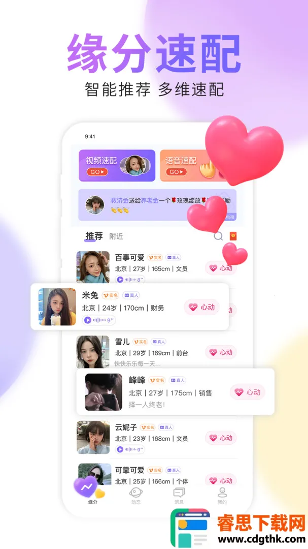 2. 精准推荐:会依据你的地理位置信息,向你推荐附近用户,各种优质单身人士汇聚于此,增加结识身边有缘人的机会。