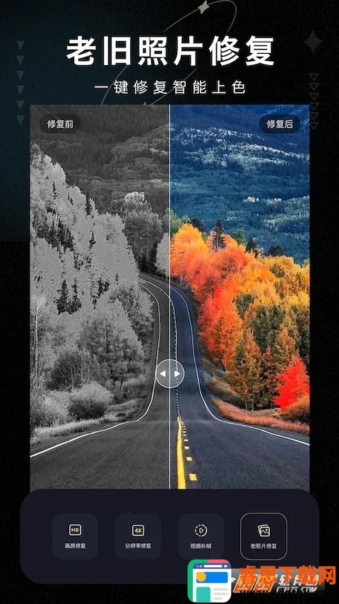 画质修复大师挺好用的!它是专业手机修图工具,能把老旧模糊破损照片修复清晰。依托先进AI照片识别技术,让珍贵回忆清晰重现。还有智能着色,给黑白照自然添彩。对修图小白很友好,简化操作,有详细教程,轻松上手。它具备翻拍复原、颜色恢复等多种修图功能,满足爱美人士需求。通过AI大模型算法,自动识别翻拍老旧照片。针对残缺褪色照片,能恢复光彩。软件亮点多多,有多种自拍处理工具,海量精选素材,多种预设滤镜。优势也明显,内置绘画工具,无需Root权限就能调节游戏画质,一键提升照片清晰度,初学者也能快速享受修图乐趣,所有功能免费,几步操作就能让照片视频变清晰,自拍照更绚丽。