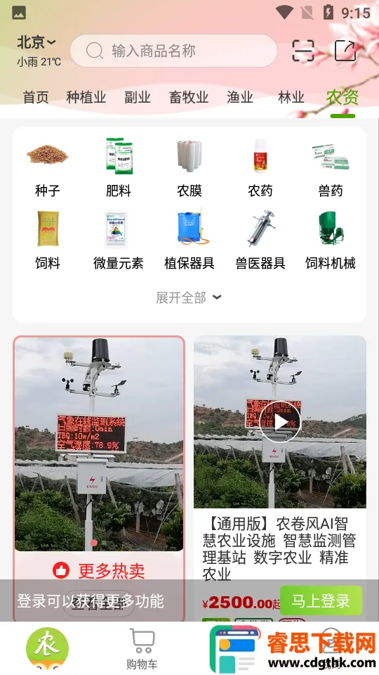 2. 具备多种特色功能,如专业全面的农业分类、现预交易模式、可视农购、观光休闲服务、互动圈子、农业服务、教育直播等。