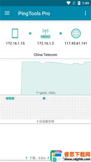 PingTools Pro中文版是网络状态诊断和管理工具,整合多种网络测试功能。能查网络连接状态、扫描分析网络、查询IP地址等,操作简单易上手,方便用户在手机上进行网络管理与故障排查 。