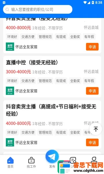 1一站式便捷体验:能从海量职位中筛选出匹配的怀远本地工作,覆盖18个乡镇,求职轻松便捷。