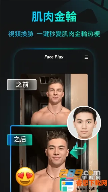 FacePlay是一款超火的换脸软件,它功能强大,能满足你的多样需求。它有很火爆的AI写真功能,无需出门就能轻松拥有绝美大片,上传一张图片就能生成不同变装图片。制作好的图片能一键保存到手机相册方便分享。它还能完美去掉照片中的水印。换脸后的照片非常逼真,毫无漏洞。软件优势明显,视频模板分类清晰,能满足各种人群需求,剪辑视频长度和尺寸大小轻松操作,还提供丰富音乐资源,让视频更有质感。使用方法简单,打开软件点击照片图标,选喜欢的照片确认,在风格选项选模板开始制作,几秒就能完成换脸,点击播放按钮即可预览。它真的为日常生活增添了很多乐趣,满足了大家的爱美之心,画质清晰,融合效果完美,快来下载体验吧!