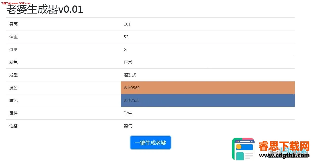 这款软件很有意思。操作简单,点击就能生成各种属性的“老婆”,像身高、体重、肤色等都能随机搭配。生成的二次元小姐姐造型时尚可爱,细节刻画到位,能满足不同喜好。对喜欢画漫画或写小说的人来说,灵感枯竭时可借此生成人设找动力。虽不能有真正的老婆,但属性很有画面感。没有繁琐操作过程,动感造型带来逼真感受,很适合宅男,各种类型角色等你来选,能让人享受自由创作的乐趣,值得一玩。