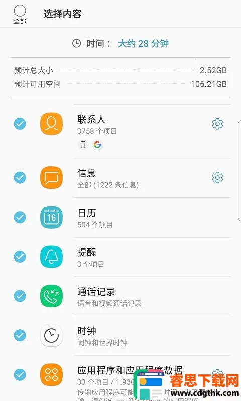 3. 数据保存完整:Smart Switch会将数据全都保存起来,让用户无需担心数据丢失的问题,联系人、备忘录、闹钟、通话记录等,一切都在指尖之间轻松传递。