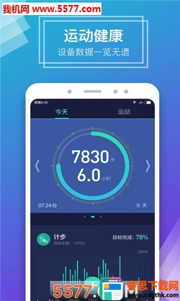 1. 数据全面且精准:能记录运动步数、距离、消耗卡路里,展示24小时活动运动量及每周每月总运动量和趋势统计图表;还可记录睡眠情况、心率数据、血压数据、体重变化曲线等,数据精准,为健康提供有力保障。