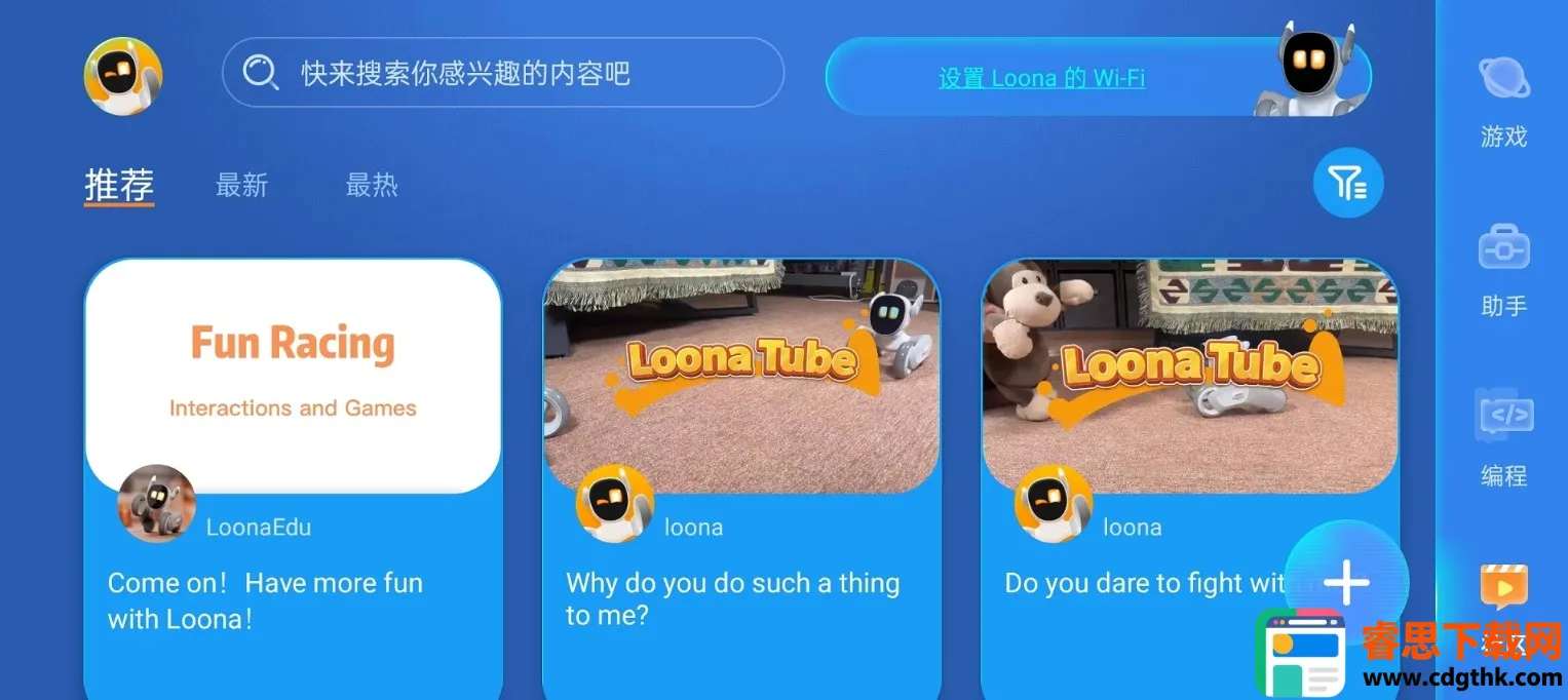 Loona机器人配套的APP充满趣味与潜力。它界面直观易上手,功能丰富多样,不仅能操控机器人进行才艺表演、玩游戏,还有语音指令等实用工具。社区交流平台让用户能分享创意经验,共同探索无限可能。虽有已知bug,但开发者积极修复。用户能通过它轻松连接并操控机器人,享受各种精彩应用场景,无论是编程、玩耍还是与其他爱好者交流,都给人带来全新互动体验,非常值得一试,能为生活添加不少乐趣。