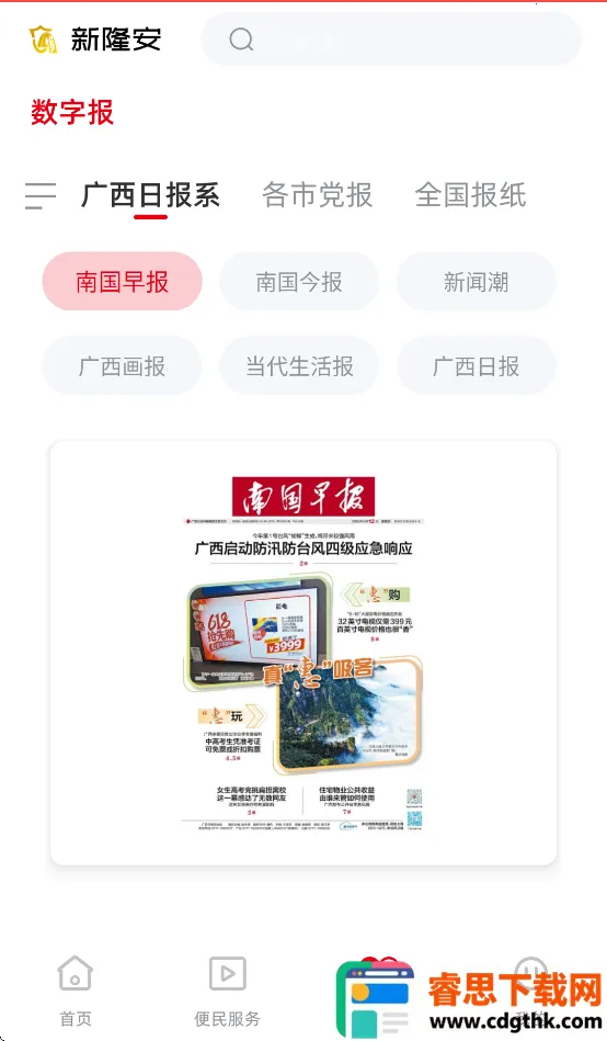 1. 新闻政务融合:首页推送隆安最新时政、热点与民生百态,顶部导航栏设有特色栏目。集成本地政务办事大厅入口,提供多种政务服务。