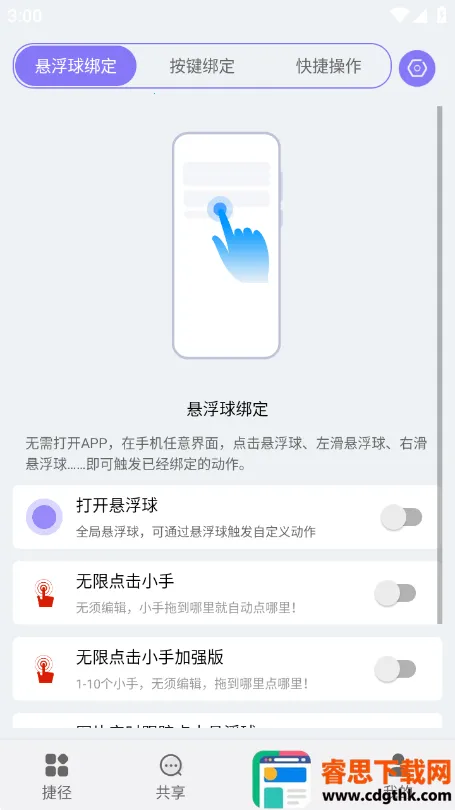1. 拥有独家浮球操作设置,用户可定制各种手势。