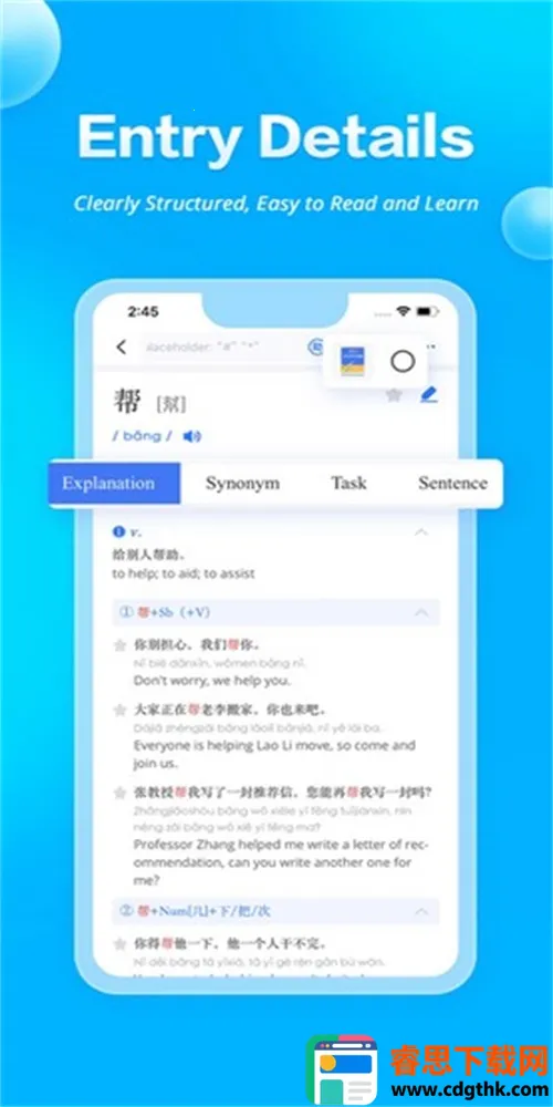 集成多部词典:JUZI汉语集成多部优质词典,总收词规模达17万条,覆盖最新HSK大纲词汇,内容严谨权威。支持中英双语关键词检索,提供拍照、手写、语音等多种输入方式,满足多样化查询需求。