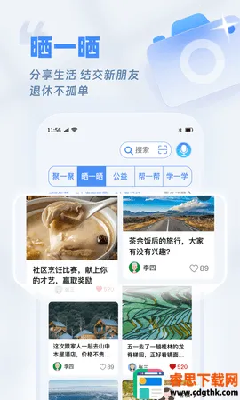 2. 便捷社交互动:可发起参与丰富活动,完成后一键分享;发布生活服务需求,专业机构或邻居接单相助;还能学习实用技巧等,发表作品获关注奖励。