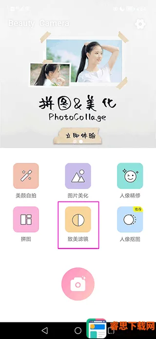 3. 提供大量功能图标,首页设置相册、摄像头、体型塑造和拼图等功能,方便用户快速找到所需。