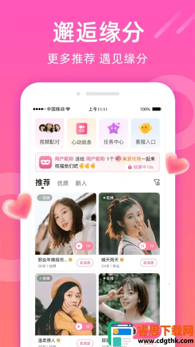 甜聊交友平台能满足你视频聊天的需求。在甜聊上,双方视频聊天时女方是不用充金币的哦。它是一款超棒的聊天交友软件,有文字、语音、视频等多种聊天方式,能为你创造更多恋爱机会,让恋爱交友变得简单。这里有严格的真人认证与双重审核机制,能精准筛选真实可靠的聊天对象,社交安心无忧。你还可以发布动态分享生活碎片,发现身边新鲜事。家族群聊温馨似家,能和趣味相投的伙伴相聚谈天说地。更有各路才艺达人带来直播娱乐,劲歌热舞、幽默段子不断。不管你是想找人倾诉,还是想邂逅缘分,甜聊都能满足你,快来体验吧,在这里开启有趣的交友之旅,享受视频聊天的便利,无需担心女方充金币的问题,尽情享受交友的快乐。