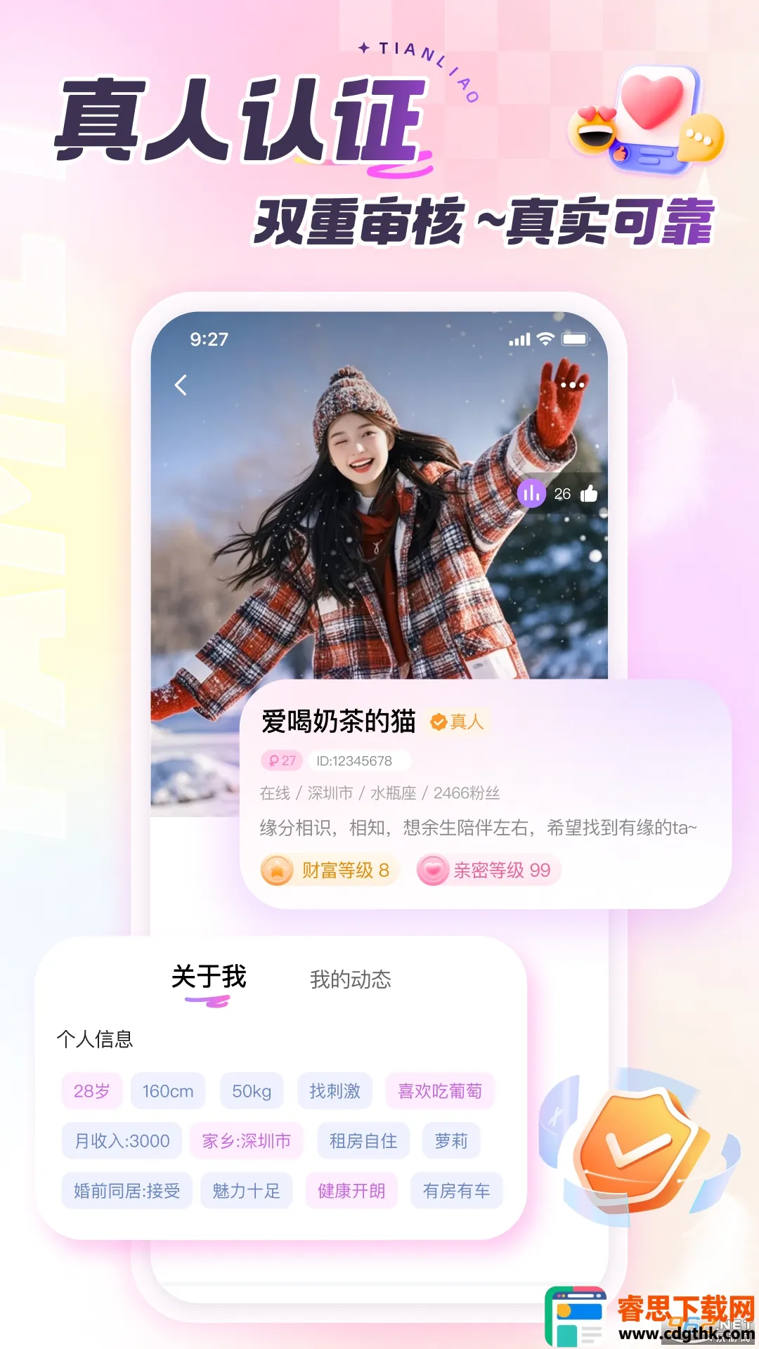 1. 真实可靠:有着严格的真人认证与双重审核机制,能精准筛选真实可靠的聊天对象,让社交没有后顾之忧。