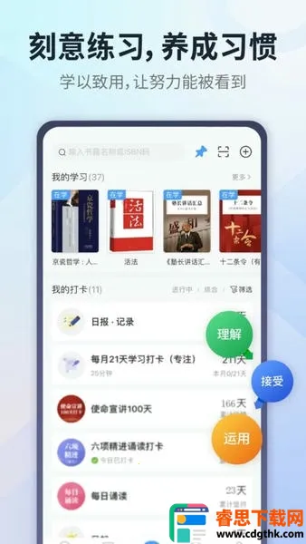 学习资源优质:有庞大书库,提供精选国学哲学等经典文学内容,支持笔记和跟读。圈内知识有序沉淀,查看无干扰,还有完善的学习打卡数据统计,节省人力统计成本,量化评估学习情况。