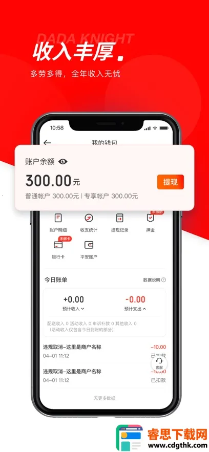 2. 收入丰厚有保障:按单结算,多劳多得,还有常规奖励活动。24小时订单推送不断,更有夜间补助。收入明细清晰,还能自助提现。