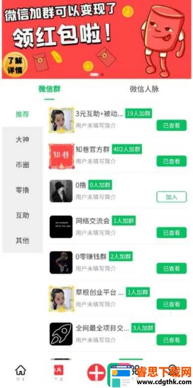 知巷安卓版是一款专注网赚生态的工具应用,整合优质推广资源,有项目分享、人脉互粉等核心功能,收益基于实际推广,新人零门槛,老用户可升级收益结构,是兼具实用、成长与社区属性的高活跃度App。
