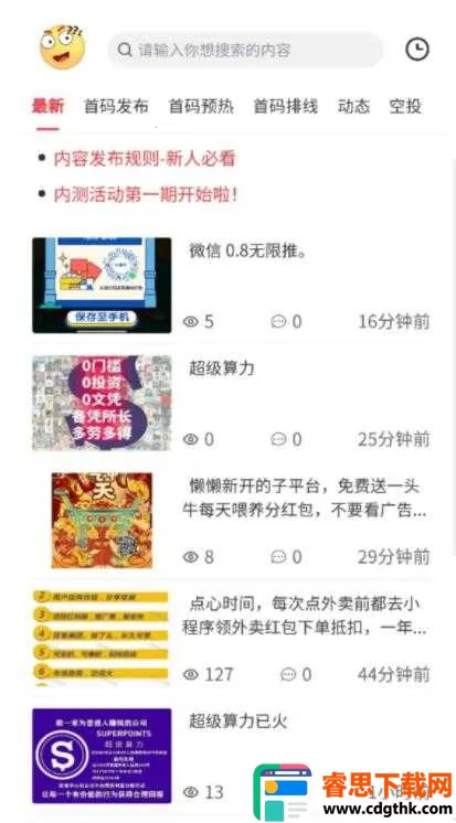 1. 资源整合强:聚合全网一手首码与官方团队项目,日均新增发布超100条,找项目更便捷。