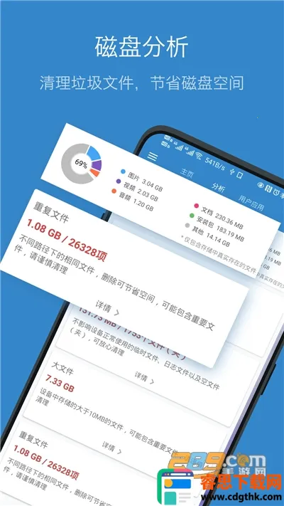 2. 可进行磁盘分析,清理垃圾文件,有效节省磁盘空间,让手机存储更高效。