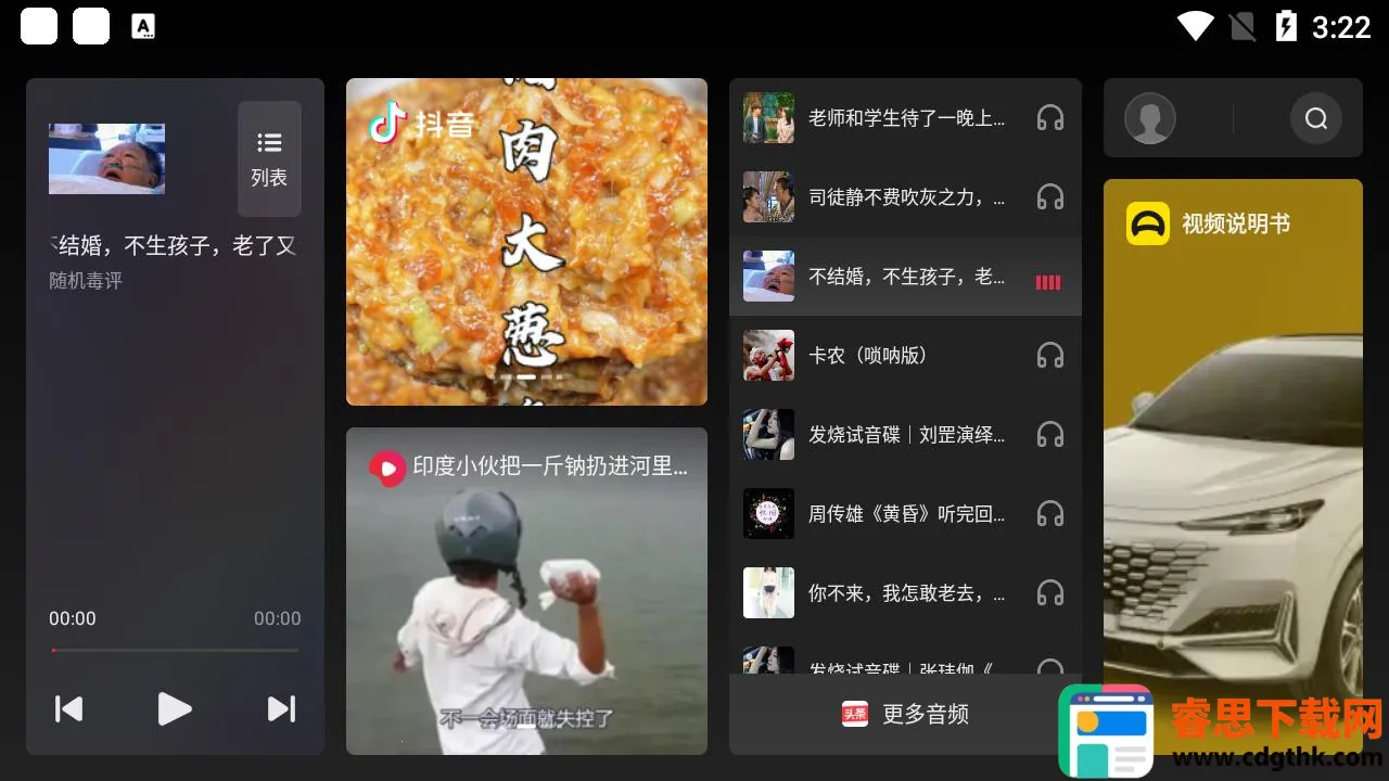 1. 内容超丰富:整合抖音、西瓜视频、今日头条、懂车帝等多个平台内容,涵盖音乐、视频、电台、新闻、有声书等多种娱乐形式,满足多样需求。