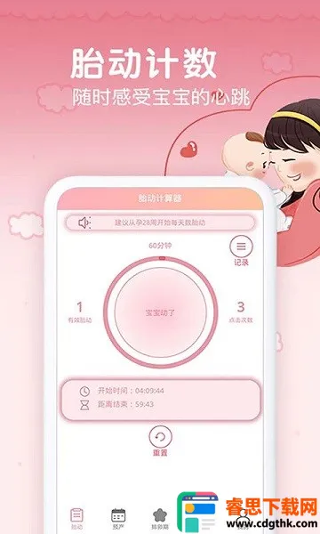 2. 贴心胎动记录:内置胎动记录模块,方便准妈妈随时记录宝宝活动,保障对宝宝健康的监测。