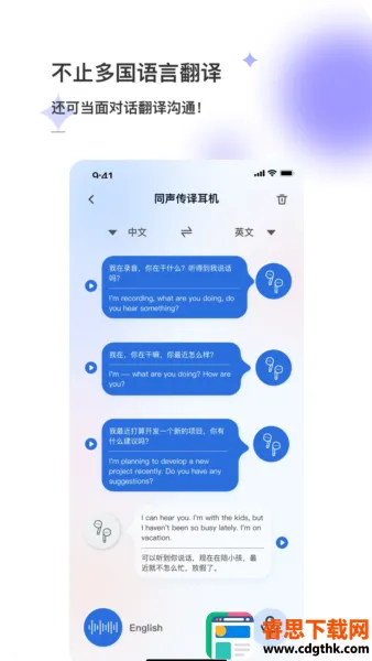 2. 拥有多种语言翻译工具,如对话翻译能识别人声,对用户对话语音内容识别完成翻译,适用于现场对话交流。还有文本翻译、语音翻译等功能,支持输入文本或语音输入进行实时翻译。