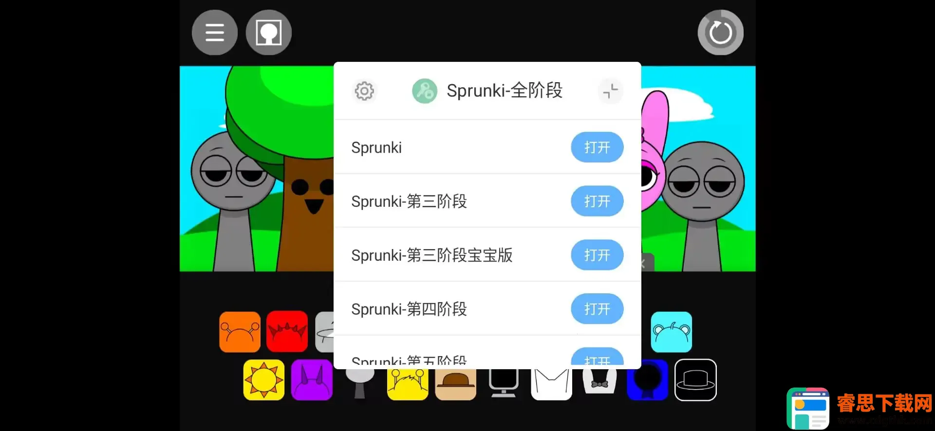 节奏盒子Sprunki全阶段可切换,能快速尝试不同版本模组,减少单独下载麻烦。含众多阶段模组,开启方式简单。游戏模式自由,可创作音乐、定制配饰,在愉快氛围中演奏,轻松混合节奏,探索音乐可能。