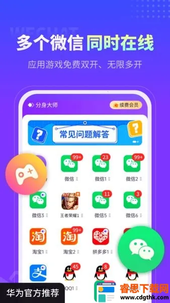 1. 应用无限多开:独立研发的应用多开分身功能,完美支持微信、QQ、游戏等所有应用无限多开分身,满足各类人群需求。