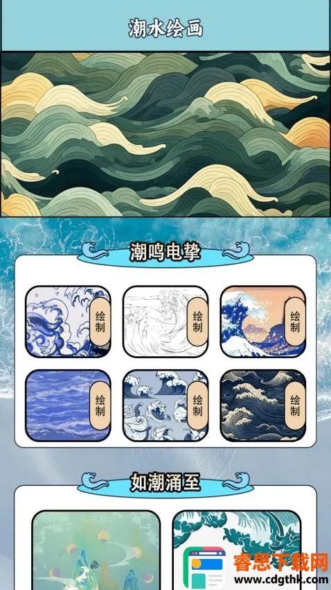 2. 自由绘画:支持用户自由绘画创作,提供丰富的绘画模版可随心选择,还能在线上实时进行绘画创作,简单绘制各类潮水样式,轻松实现灵感绘画。