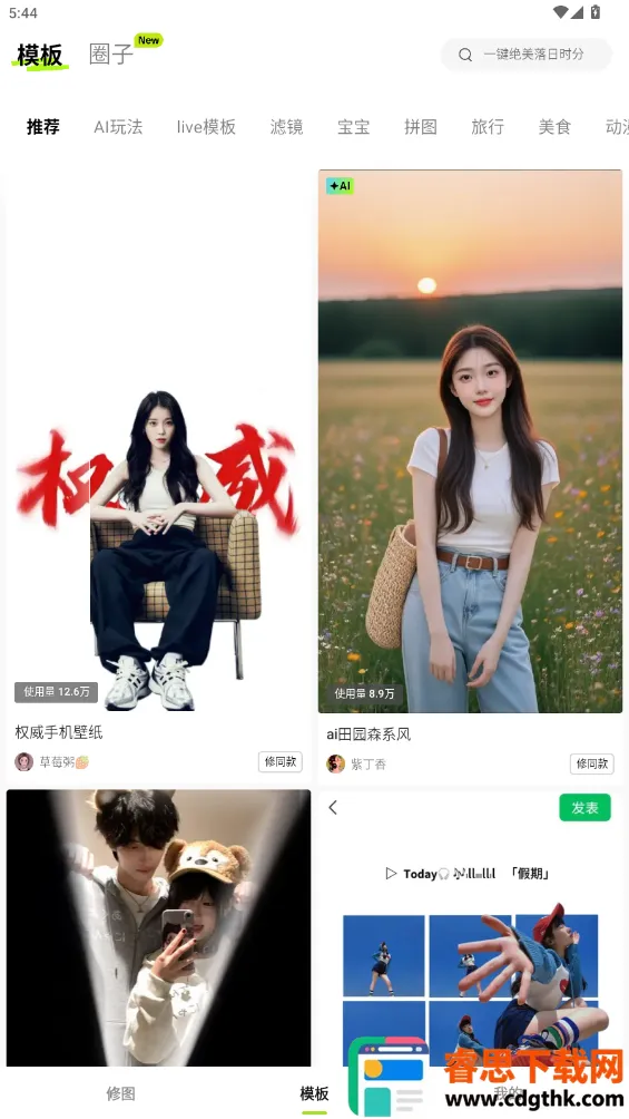 1、拥有海量原创贴纸库,持续更新多种风格,内置动态素材中心,每日推荐热门模板与创意玩法,还能一键下载整套贴纸组合,降低创作门槛。