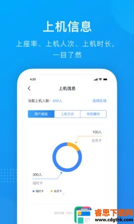 1、多网吧模式超便捷,一个账号能同时管理多个网吧的各类信息,包括上机信息、上座率等,一目了然。