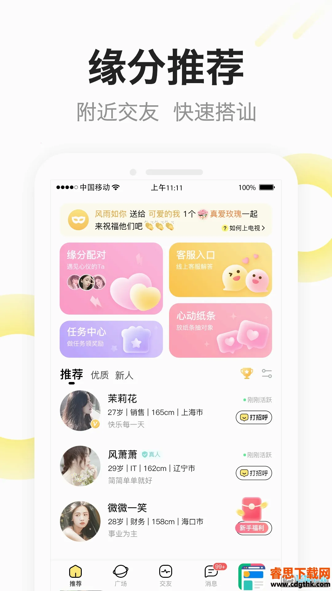 3. 精准匹配交友: 基于用户兴趣爱好和价值观匹配,让相遇更有意义,轻松找到志趣相投的朋友,增添交友乐趣。