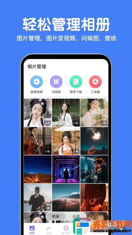 相册精灵安卓版是功能强大的图库相册应用,能智能管理相册,让照片动起来、变美。有图转视频、抠图换背景等功能,还提供海量壁纸、拼图编辑,操作简便,支持多语言,满足多样需求。