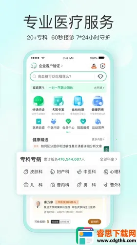 1. 专业医疗服务:汇聚全国几千名三甲名医,覆盖24个科室,724h全天候线上问诊,提供专家线上坐诊,秒级响应。