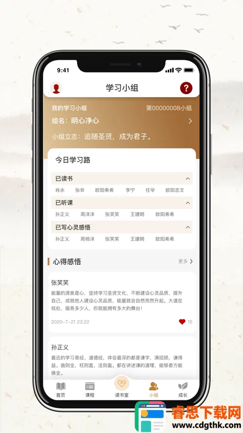 软件特色满满。它能提升智慧而非知识,从五千年中华文化中找答案,通过碎片化学习降低门槛,让你低成本开启学习。每日更新课程和千万人学习小组,助你保持热情坚持学习。关注成长而非增长,从心的成长激发潜能,实现全方位成长。还落于行动,实名制学习践行全数据上链公开,建立诚信人际网络。