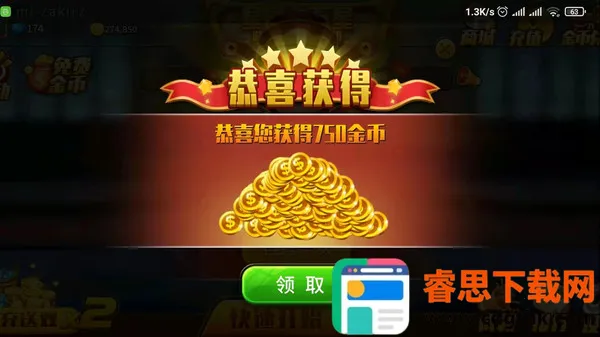 2、进入游戏可以自动弹出登录奖励,获取一万金币,点击领取