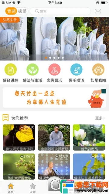 4. 内容丰富:首页有丰富的佛法音频和视频资源,精选内容有大量经文视频,栏目板块涵盖各类佛经诵读等内容。