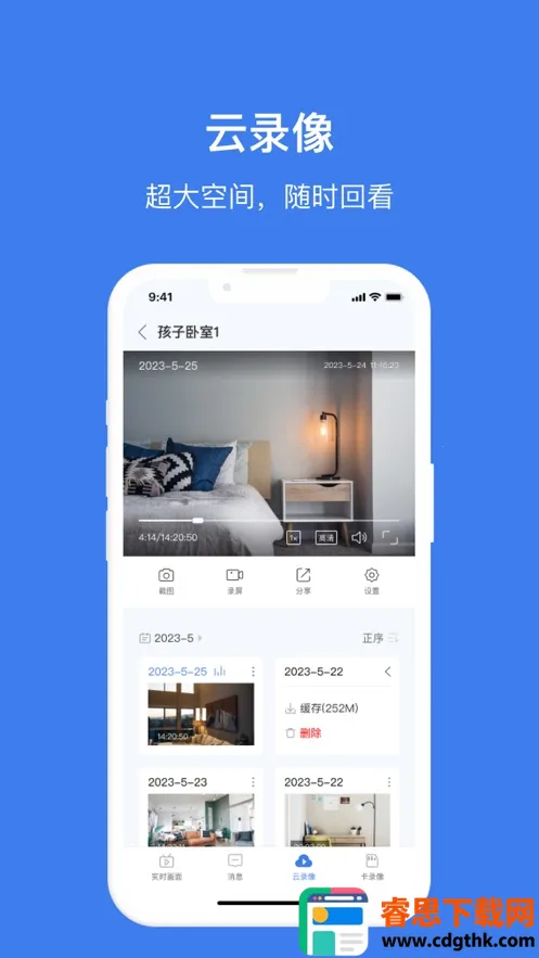 3. 可靠的云存功能:可将摄像头录像存储到云端,避免 SD 卡容量不足问题,且保证视频安全,即便摄像头损坏或丢失,监控视频仍能在云端查看和下载。